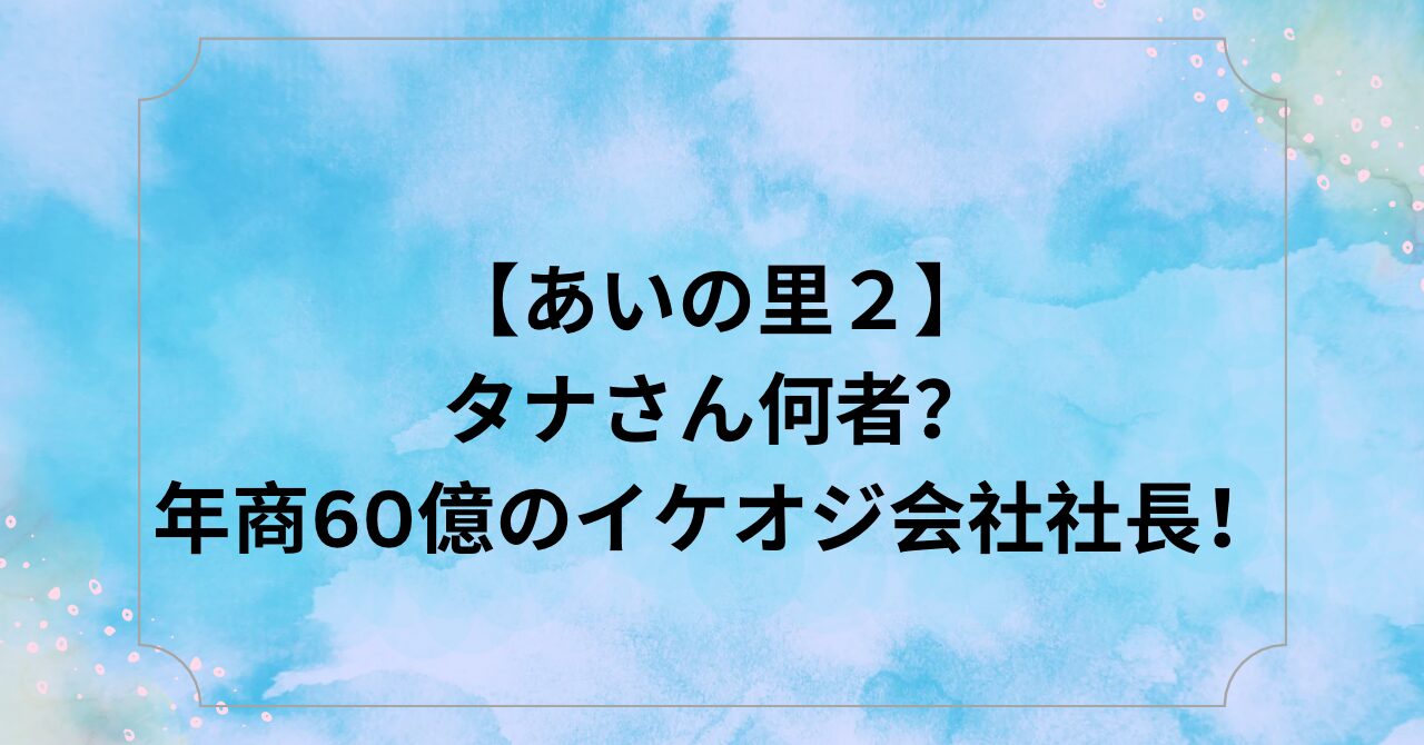 今回は、【あいの里2】タナさん何者?年商60億のイケオジ会社社長!についてまとめました。