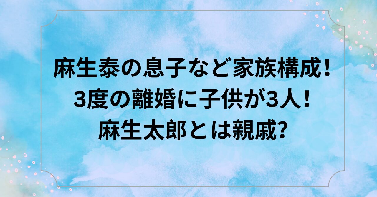 今回は、麻生泰の息子など家族構成!3度の離婚に子供が3人!麻生太郎とは親戚?についてまとめました。