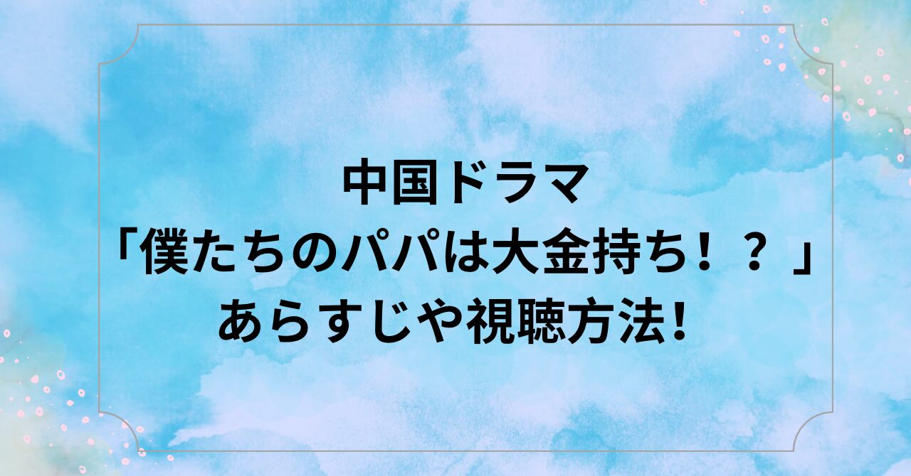 今回は中国ドラマ「僕たちのパパは大金持ち!?」あらすじや視聴方法!についてまとめました。