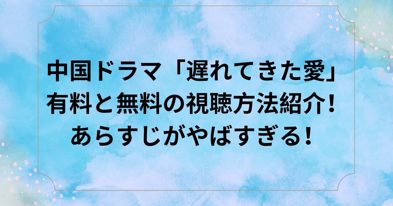 今回は、中国ドラマ「遅れてきた愛」有料と無料の視聴方法紹介!あらすじがやばすぎる!についてまとめました。