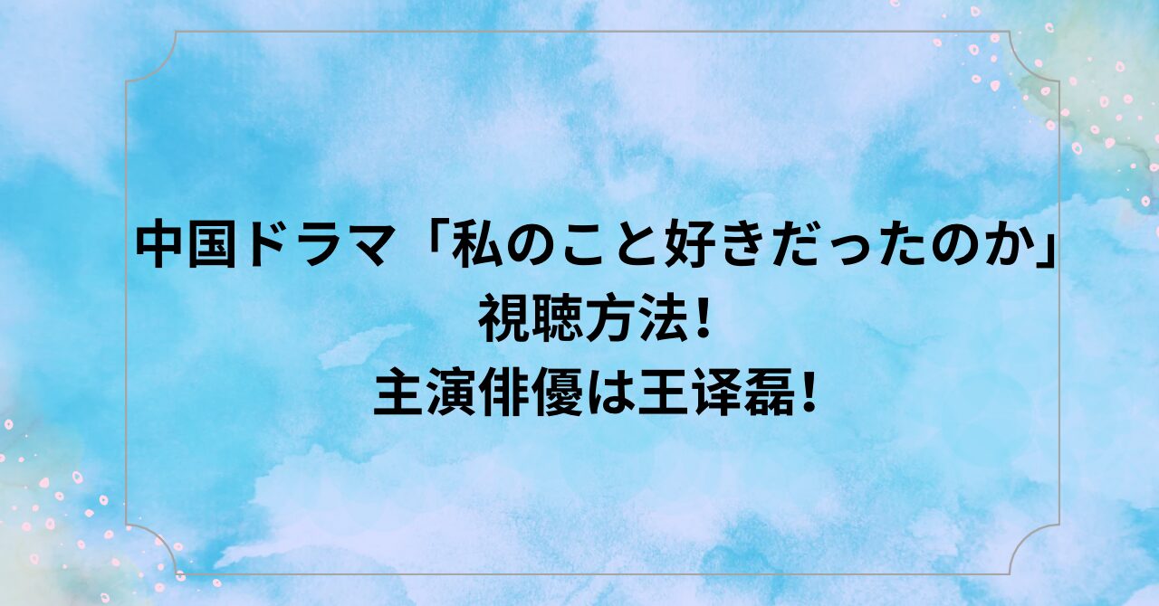 今回は、中国ドラマ「私のこと好きだったのか」視聴方法!主演俳優は王译磊!についてまとめました。