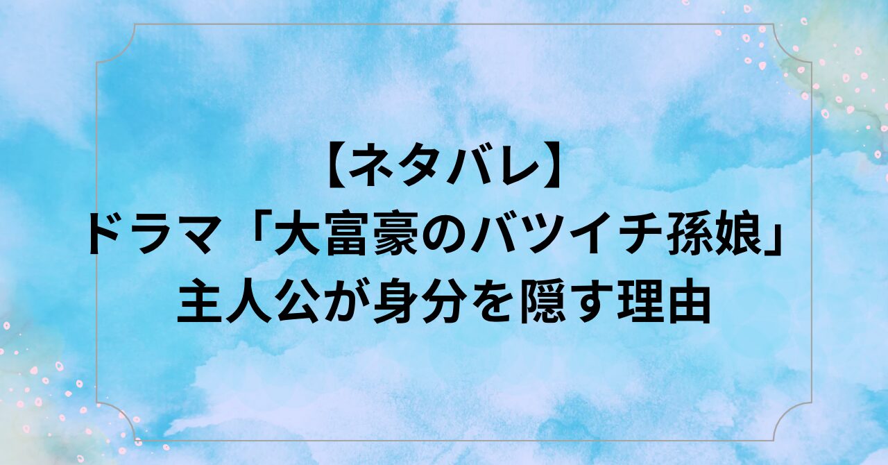 今回は、【ネタバレ】ドラマ「大富豪のバツイチ孫娘」で主人公が身分を隠す理由についてまとめました。