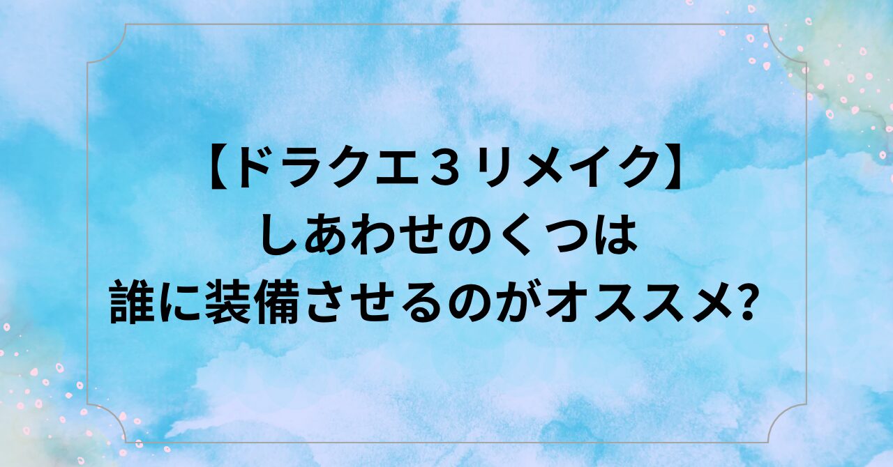 今回は、【ドラクエ3リメイク】しあわせのくつは誰に装備させるのがオススメ?についてまとめました。