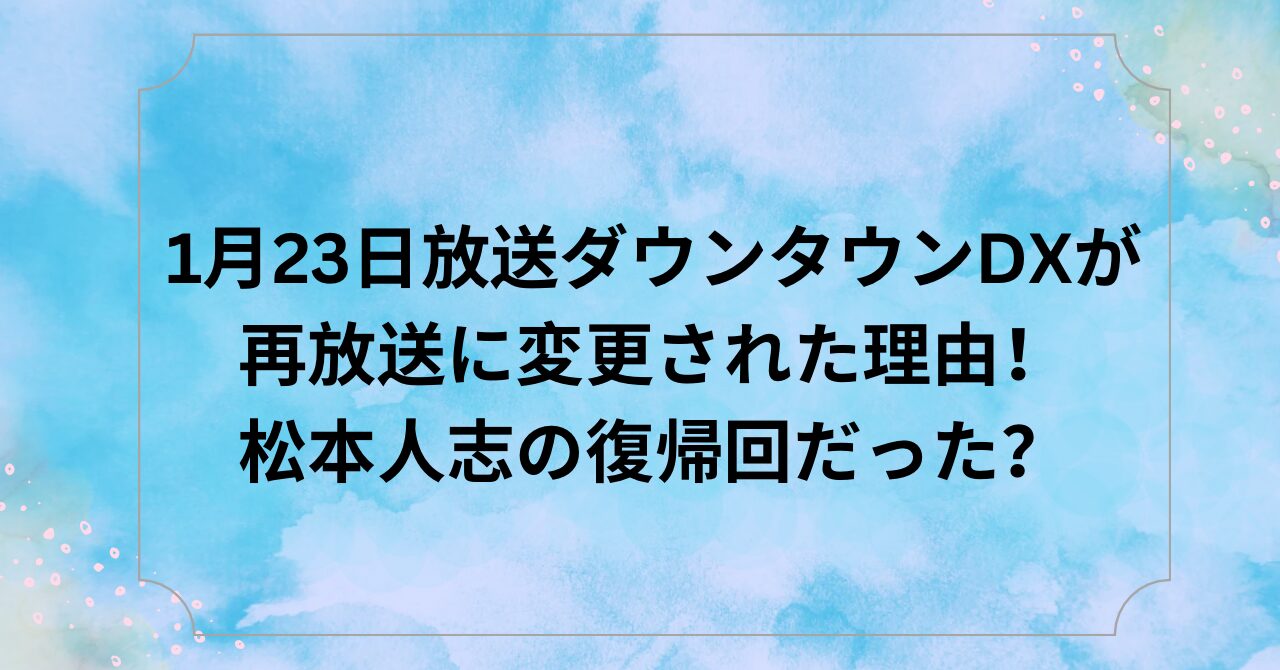 2025年1月23日、読売テレビ・日本テレビ「ダウンタウンDX」は、この日放送予定を変更し、再放送にすると発表しました。