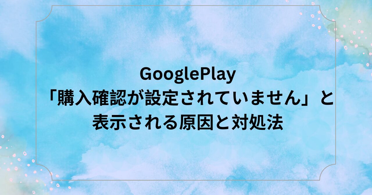 今回は、GooglePlay「購入確認が設定されていません」と表示される原因と対処法についてまとめました。