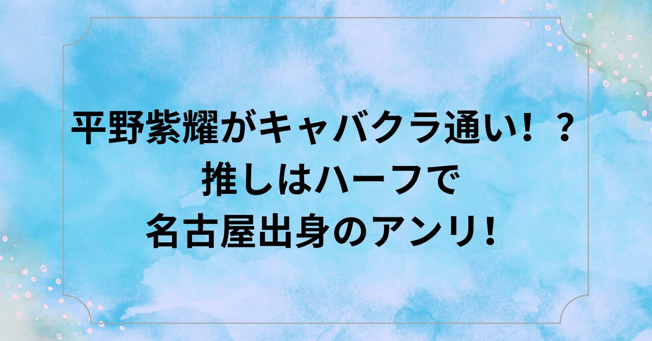 今回は、平野紫耀がキャバクラ通い!?推しはハーフで名古屋出身のアンリ!についてまとめました。