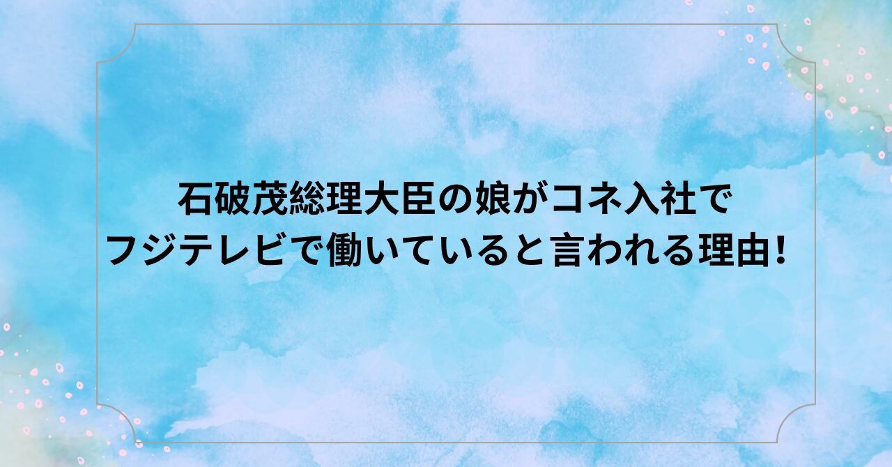 石破茂総理大臣の娘(次女)がフジテレビにコネ入社したと言われる理由は以下のものが考えられます。