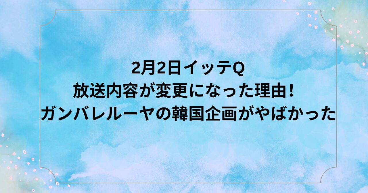 今回は、2月2日イッテQの放送内容が変更になった理由!ガンバレルーヤの韓国企画がやばかったについてまとめました。