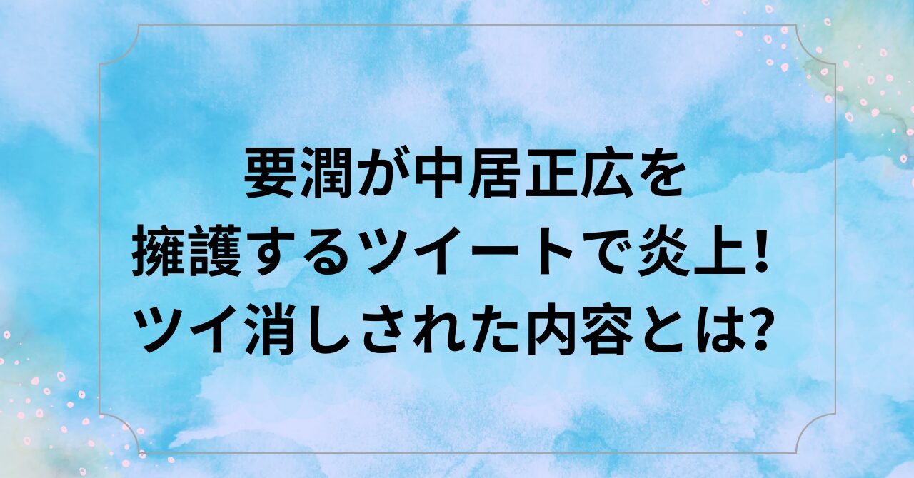 要潤さんは、中居正広さんとプライベートでの付き合いが多かったようで中居さんを擁護するツイートが世間から批判を浴びたようです。