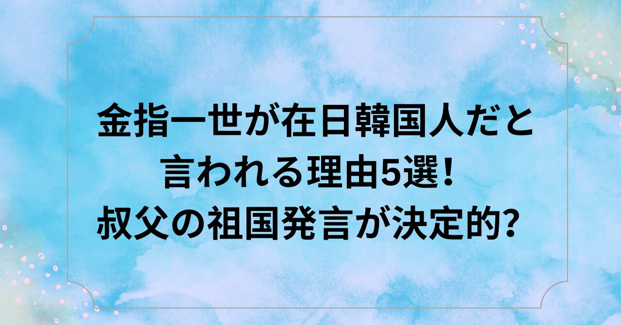 今回は、金指一世が在日韓国人だと言われる理由5選!叔父の祖国発言が決定的?についてまとめました。