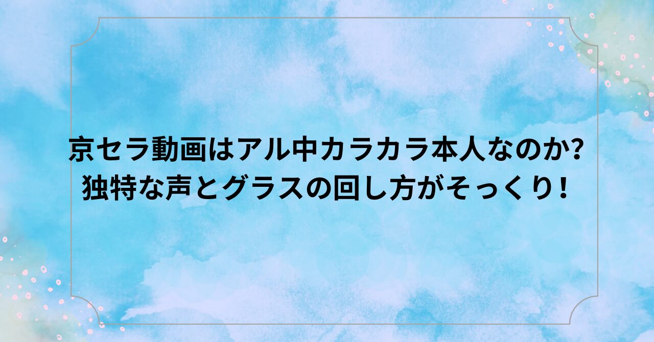 今回は、京セラ動画はアル中カラカラ本人なのか?独特な声とグラスの回し方がそっくり!についてまとめました。