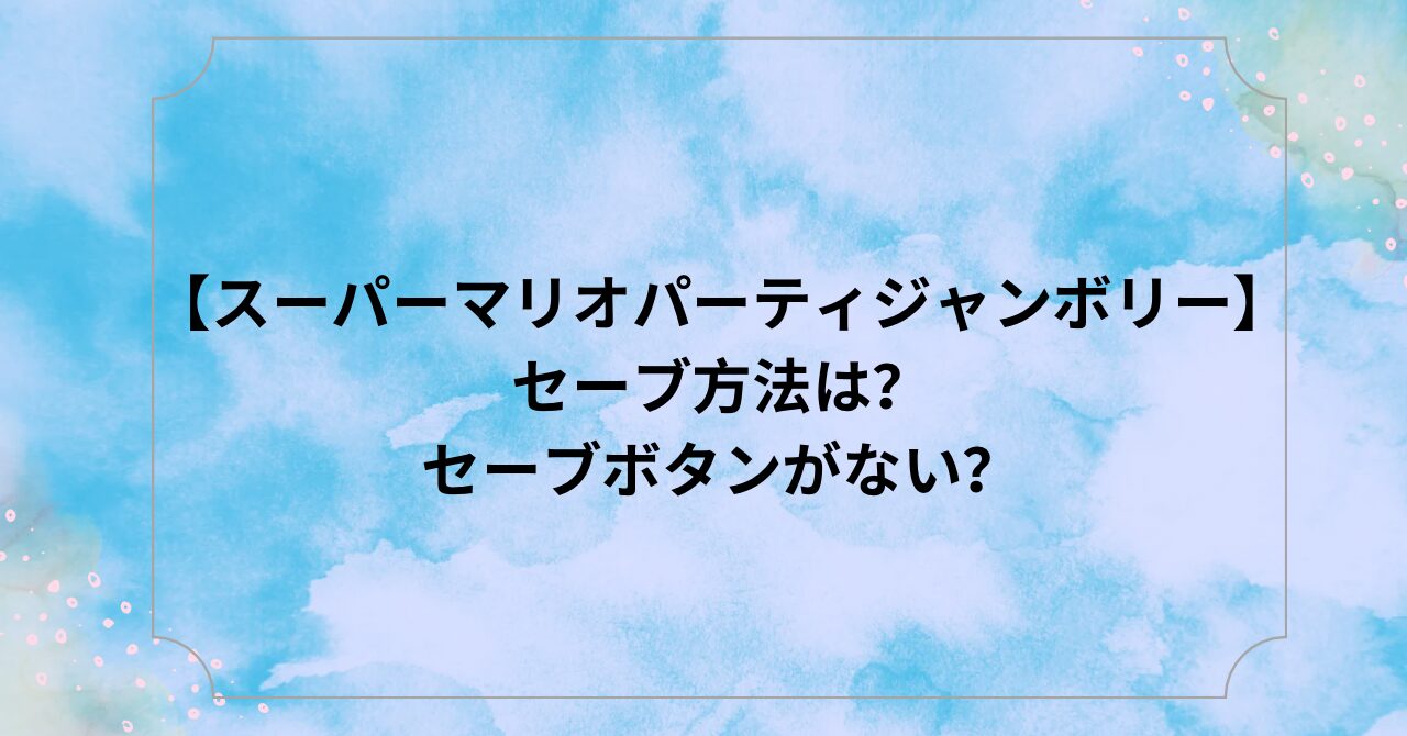 今回は、【スーパーマリオパーティジャンボリー】セーブ方法は?セーブボタンがない?についてまとめました。