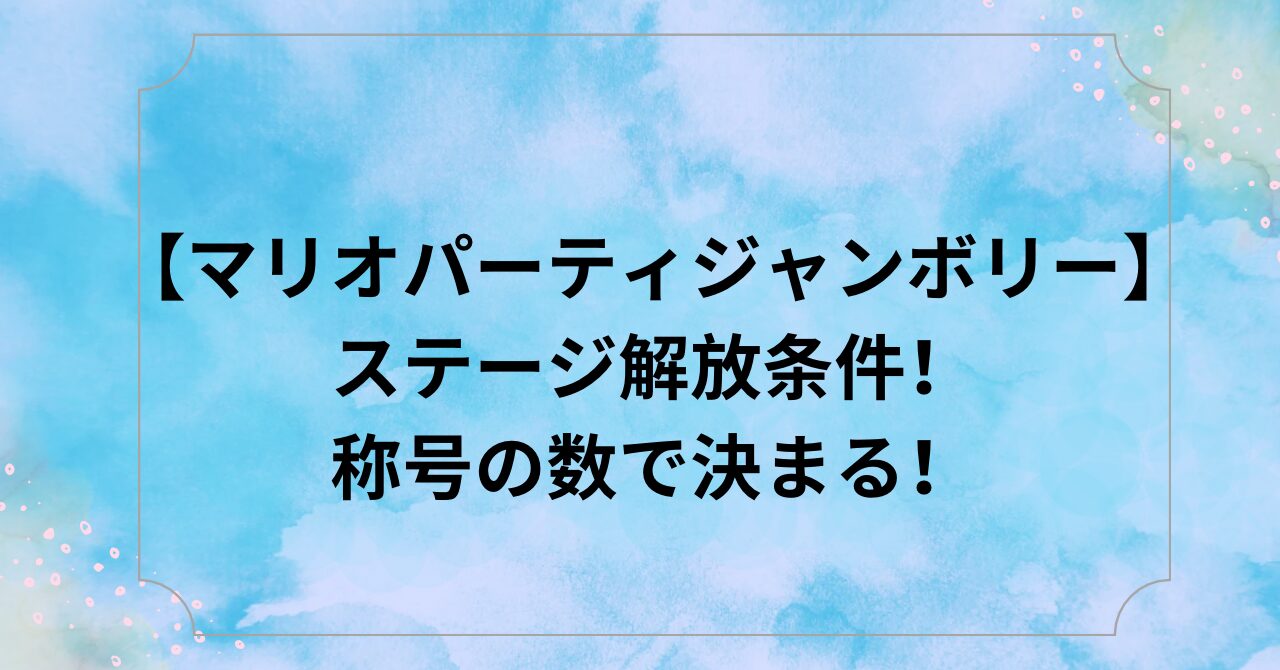 今回は、【マリオパーティジャンボリー】ステージ解放条件!称号の数で決まる!についてまとめました。