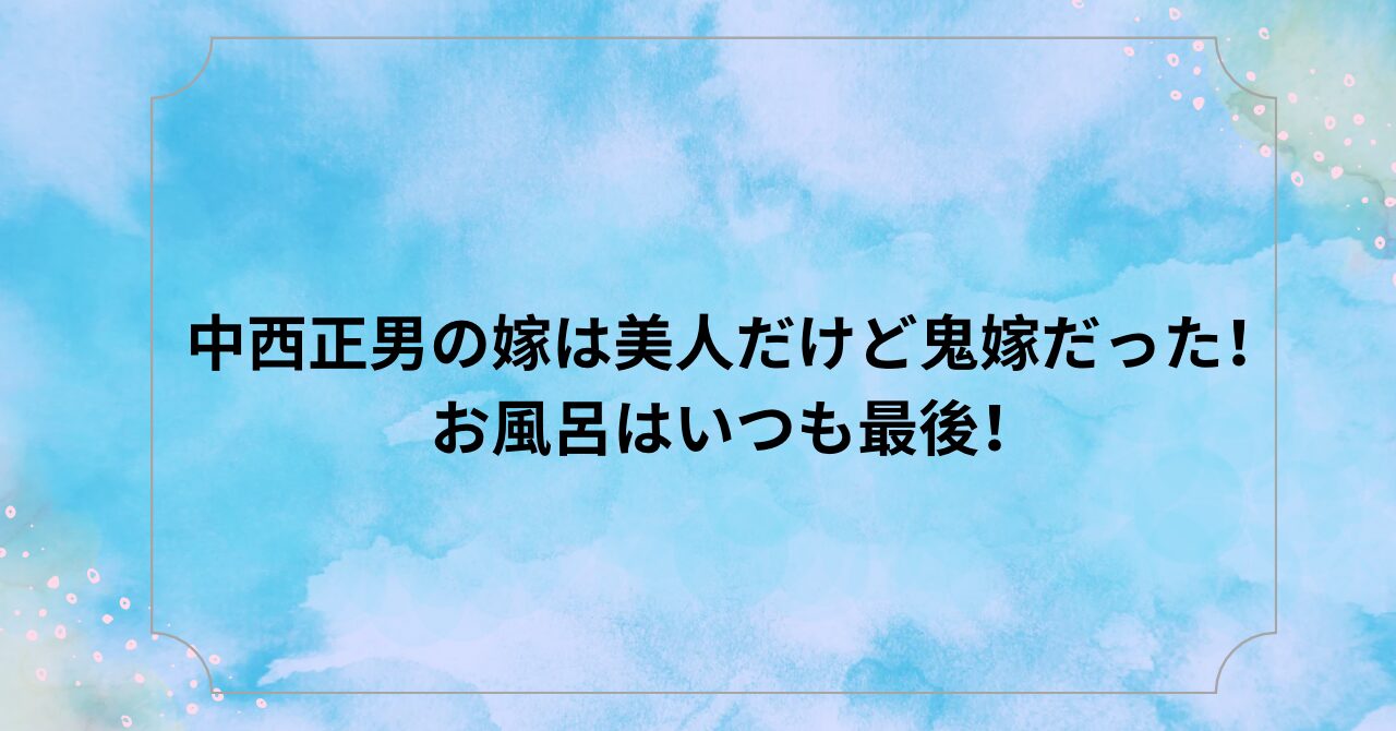 今回は、中西正男の嫁は美人だけど鬼嫁だった!お風呂はいつも最後!についてまとめました。