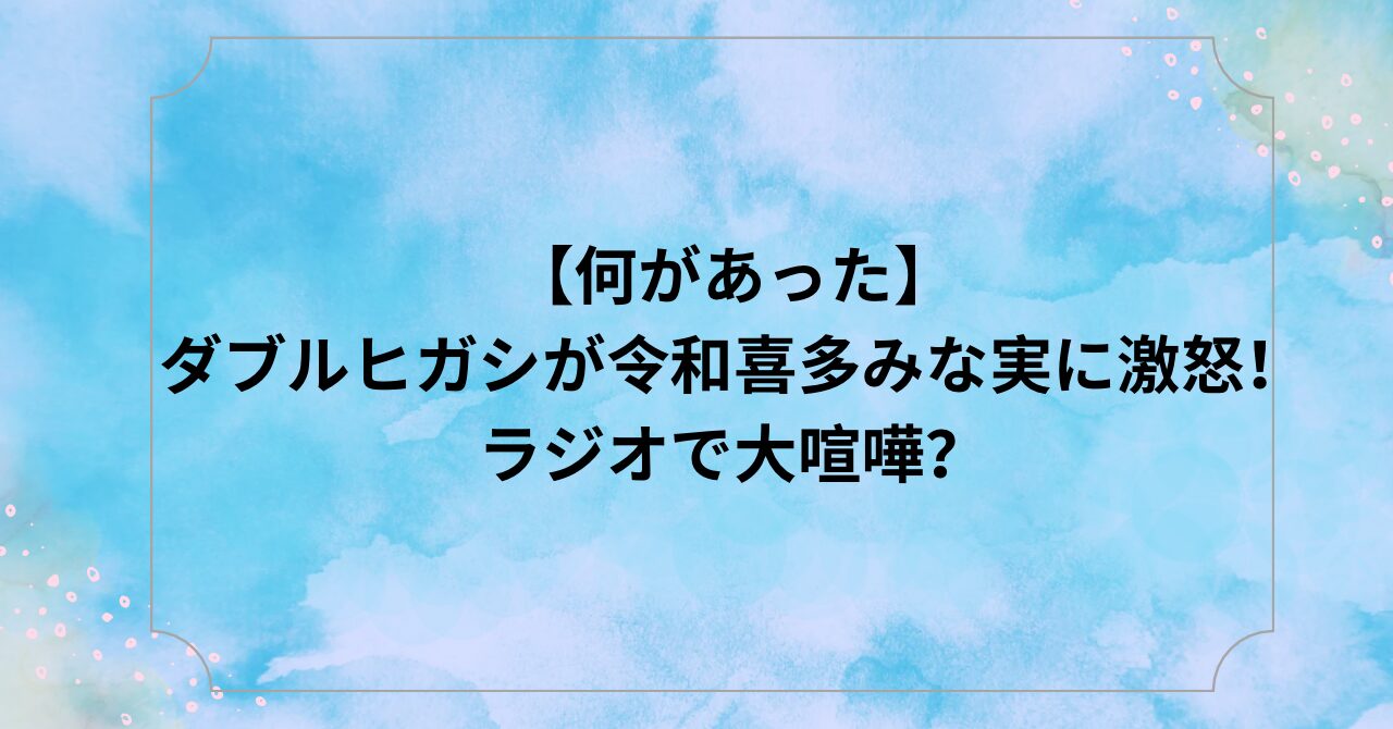 今回は、【何があった】ダブルヒガシが令和喜多みな実に激怒!ラジオで大喧嘩?についてまとめました。