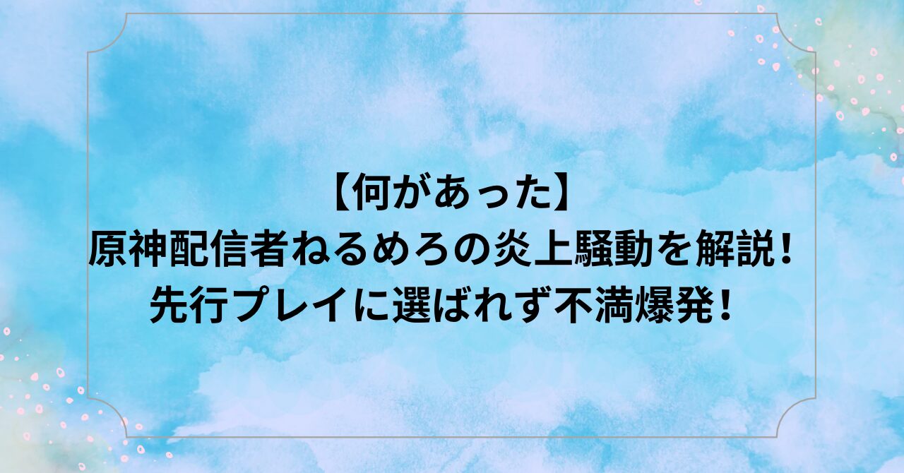 今回は、【何があった】原神配信者ねるめろの炎上騒動を解説!先行プレイに選ばれず不満爆発!についてまとめました。