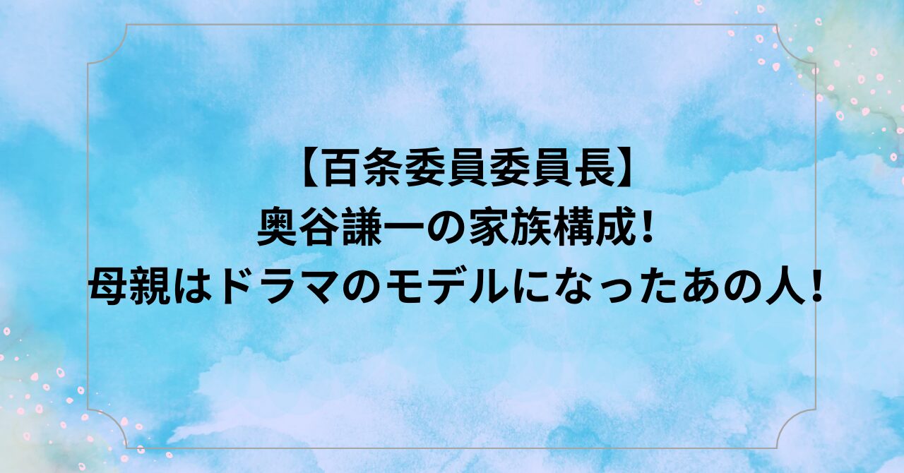 今回は、【百条委員委員長】奥谷謙一の家族構成!母親はドラマのモデルになったあの人!についてまとめました。
