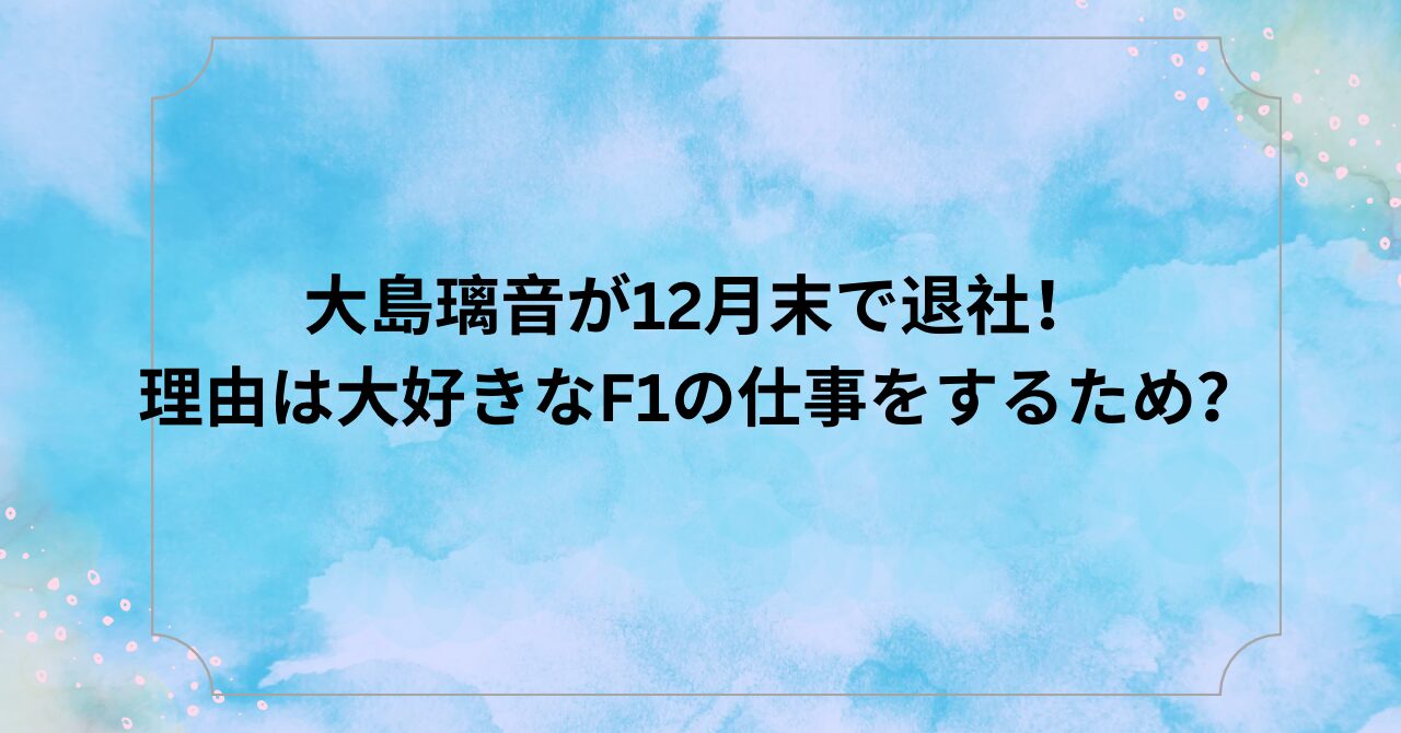 今回は、大島璃音が12月末で退社!理由は大好きなF1の仕事をするため?についてまとめました。