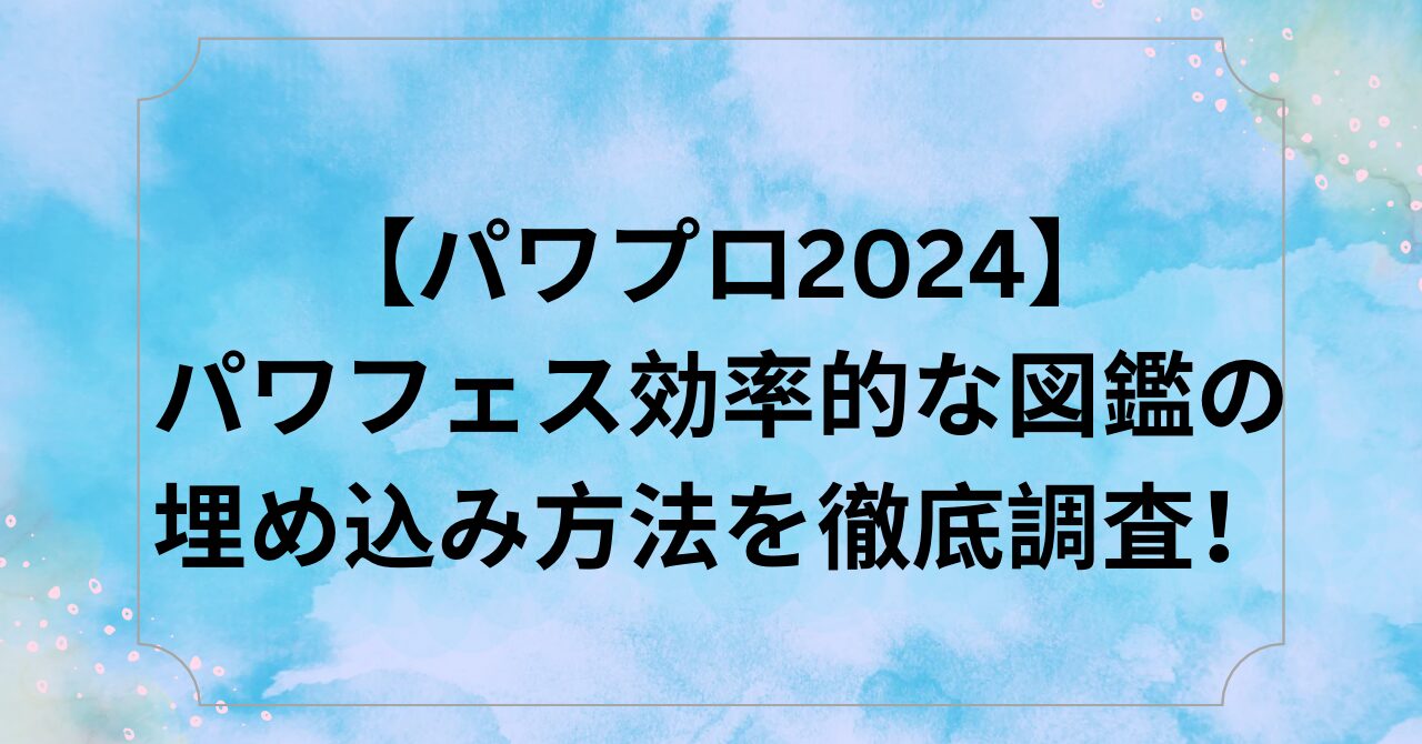 今回は、パワプロ2024のパワフェスでの効率的な図鑑の埋め込み方法を調査していきます。