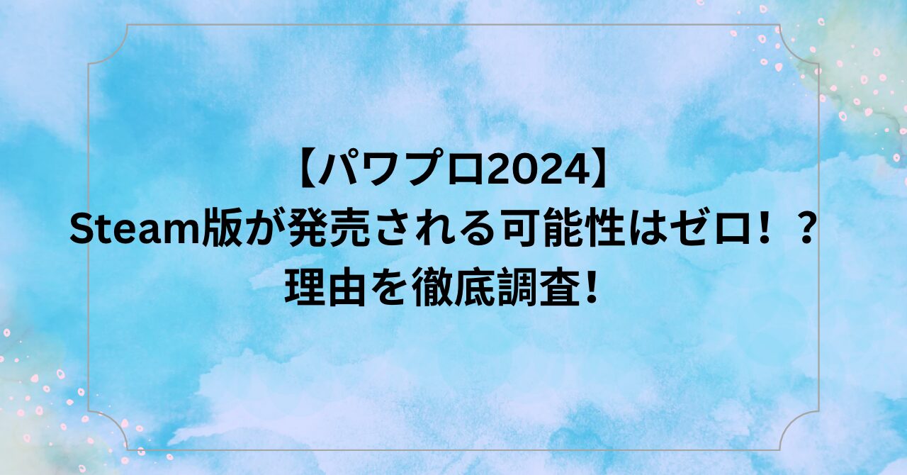 今回は、パワプロ2024のSteamが発売される可能性について調査していきます。