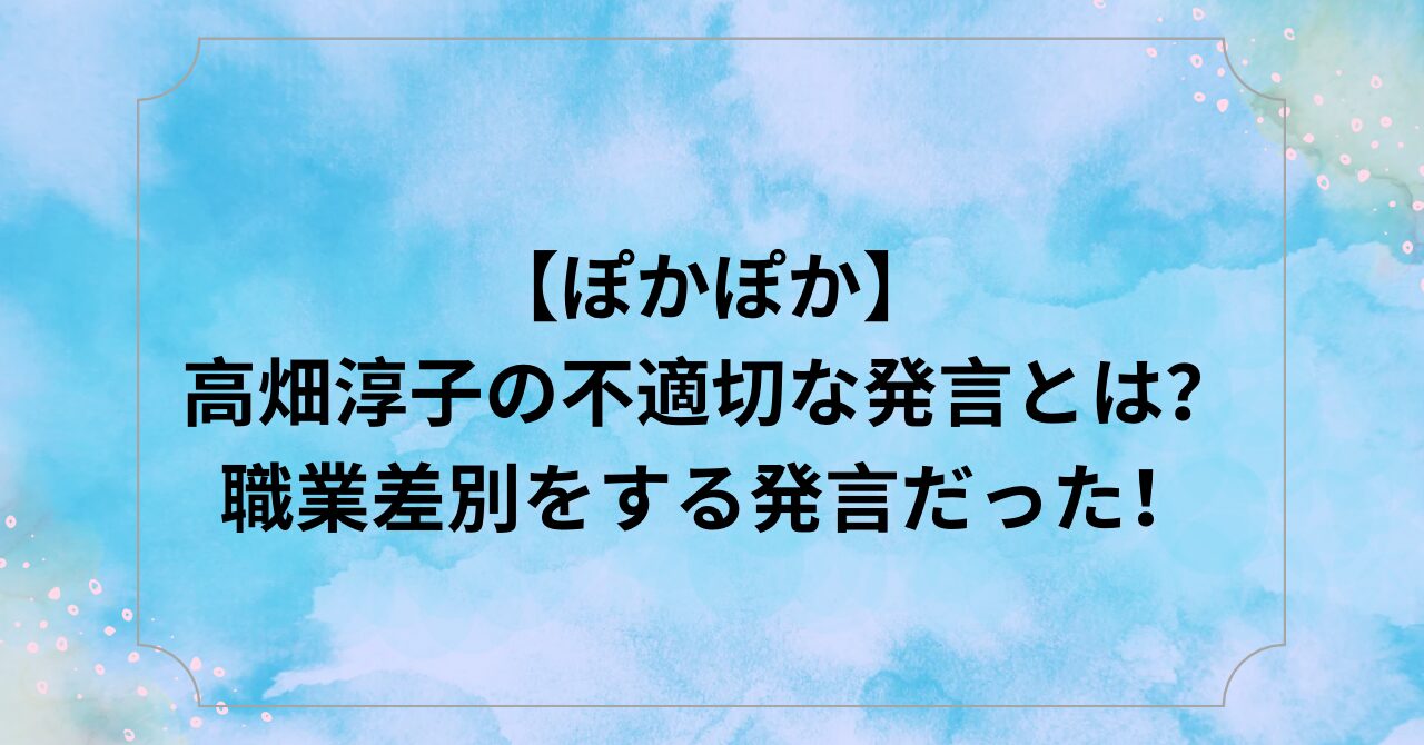 今回は、【ぽかぽか】高畑淳子の不適切な発言とは?職業差別をする発言だった!についてまとめました。