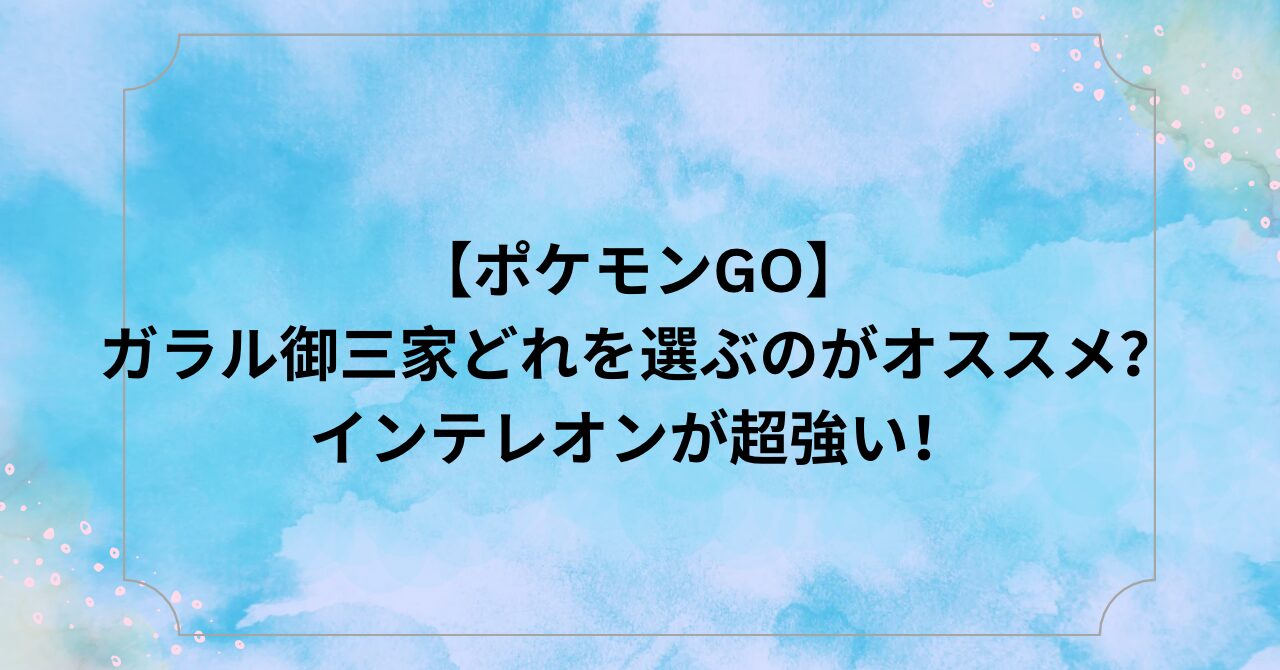 今回は、【ポケモンGO】ガラル御三家どれを選ぶのがオススメ?インテレオンが超強い!についてまとめました。