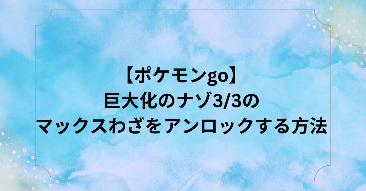 今回は、【ポケモンgo】巨大化のナゾ3/3のマックスわざをアンロックする方法についてまとめました。