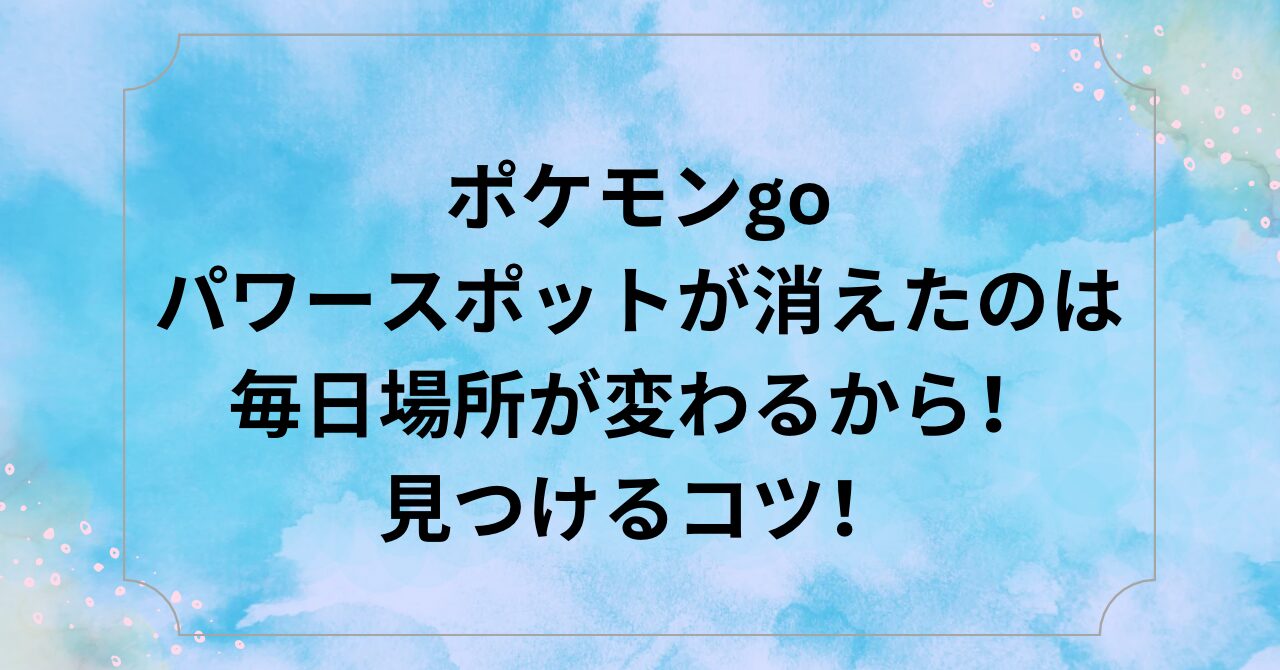 今回は、ポケモンgoのパワースポットが消えたのは毎日場所が変わるから!見つけるコツ!についてまとめました。