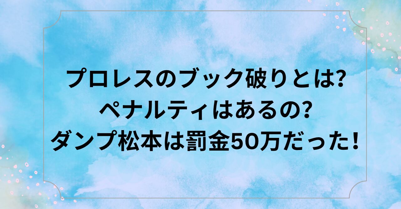 今回は、プロレスのブック破りとは?ペナルティはあるの?ダンプ松本は罰金50万だった!についてまとめました。