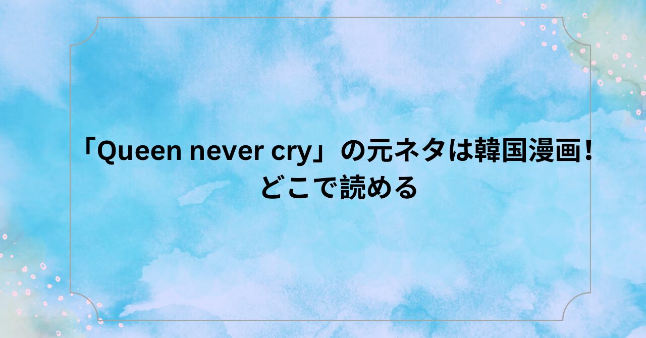 今回は、「Queen never cry」の元ネタは韓国漫画!どこで読めるについてまとめました。
