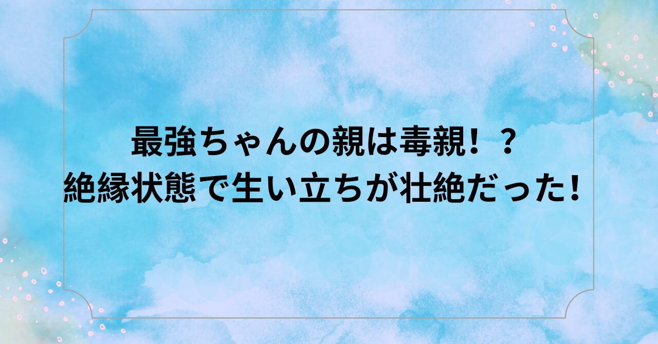 今回は、最強ちゃんの親は毒親!?絶縁状態で生い立ちが壮絶だった!についてまとめました。