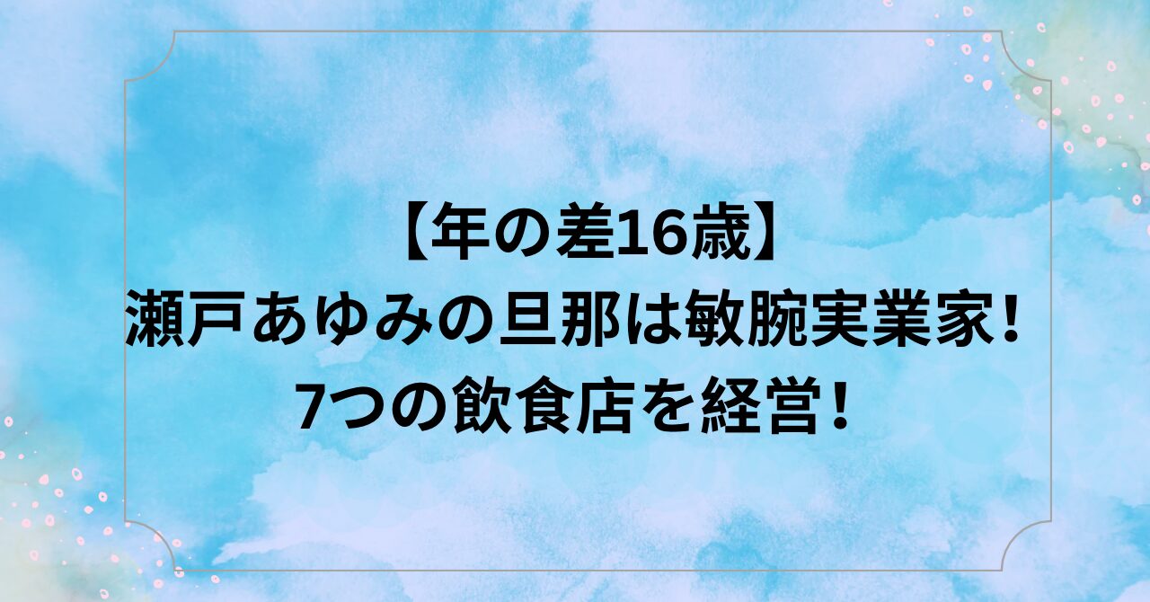 今回は、【年の差16歳】瀬戸あゆみの旦那は車田篤!7つの飲食店経営する実業家!についてまとめました。