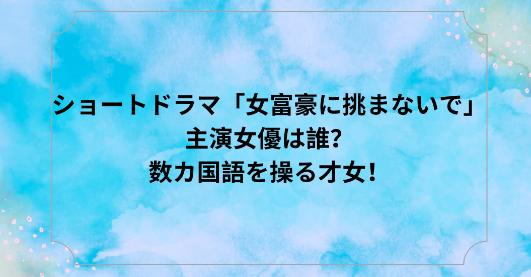 今回は、ショートドラマ「女富豪に挑まないで」主演女優は誰?数カ国語を操る才女!についてまとめました。