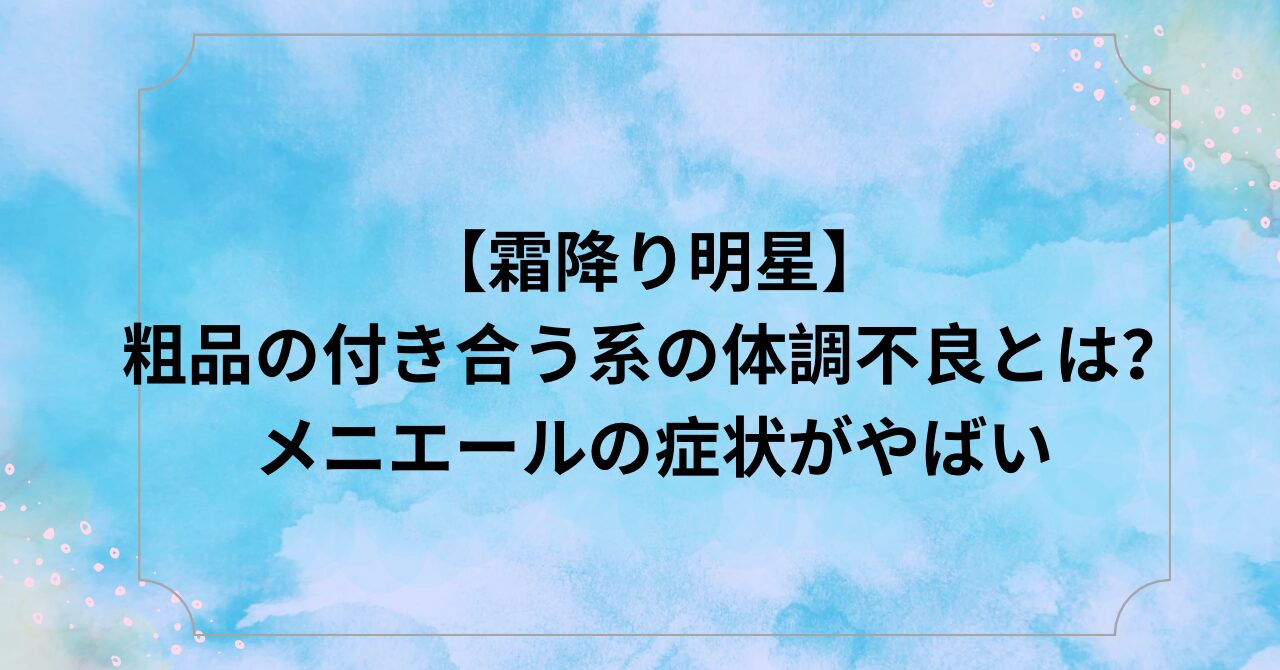 【粗品の付き合う系の体調不良】予想①:メニエール
