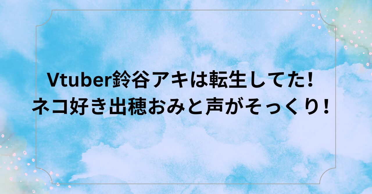 今回は、Vtuber鈴谷アキは転生してた!ネコ好き出穂おみと声がそっくり!についてまとめました。