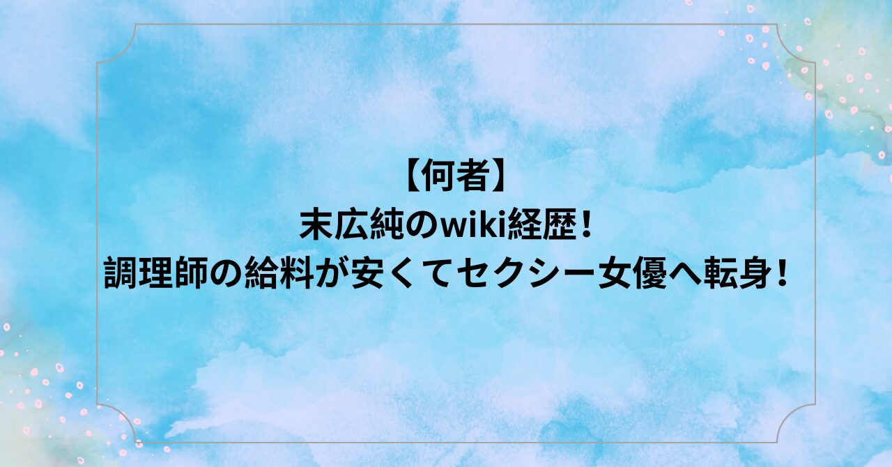 今回は、【何者】末広純のwiki経歴!調理師の給料が安くてセクシー女優へ転身!についてまとめました。