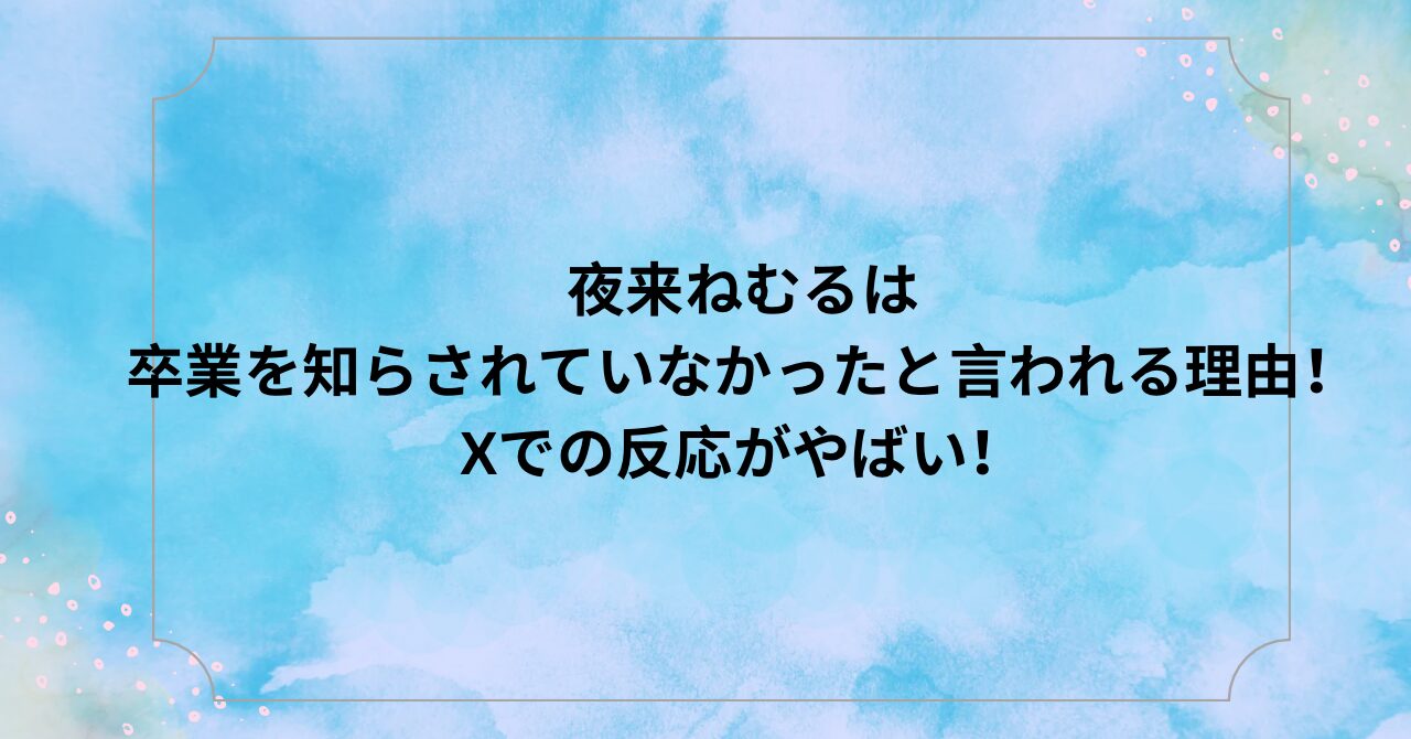 今回は、夜来ねむるは卒業を知らされていなかったと言われる理由!Xでの反応がやばい!についてまとめました。