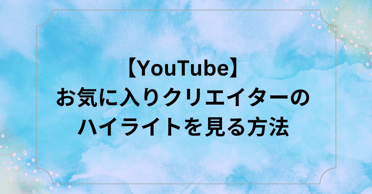 今回は、【YouTube】お気に入りクリエイターのハイライトを見る方法についてまとめました。